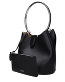 The product with MPN AA1S02820CA515999 and code F82447 leather in black is a handbags designed by Alaia. It has features like removable inner clutch, front logo, intentionally distressed areas may vary.