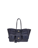 The medium Bel Air Shoulder Bag by Balenciaga combines elegance and functionality in a modern design. Carried by hand or on the shoulder thanks to the two handles, it is embellished with the Balenciaga Paris logo embossed with silver lamination and with antiqued metal details. The removable key ring and the twist lock with belts give character and practicality. Complete with a large front pocket, an open main compartment and internal pockets with and without zips, it offers impeccable organization for all your daily needs.