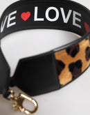Dolce & Gabbana Black Leopard Print Reversible Bag Shoulder Strap