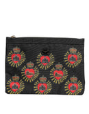 Dolce & Gabbana Black Red Nylon Sacred Heart Clutch Pouch Bag