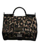 Dolce & Gabbana Brown Leopard Print Lacquard Nylon Sicily Tote Bag
