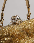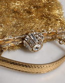 Dolce & Gabbana Gold Vanda Chain Strap Tinsel Crystal Evening Clutch Bag