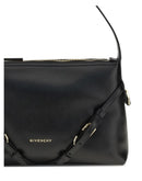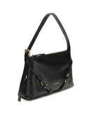 Voyou mini Shoulder Bag by Givenchy is a compact and sophisticated accessory made of smooth leather. Featuring a zippered closure, it features an adjustable strap for comfortable shoulder wear. Embossed GIVENCHY signature decorates the front, while the interior is embellished with the GIVENCHY Paris applique. GIVENCHY-engraved metal buckles and gold-tone metallic details complete the design. The main compartment offers essential space for daily essentials.