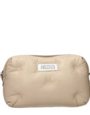 The product with MPN SB1WB0002P4300T2086 and code F85177 leather in beige is a clutches designed by Maison Margiela. It has features like front logo, adjustable shoulder, removable shoulder.
