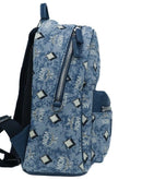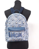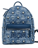 MCM Stark Small Blue Vintage Jacquard Monogram Logo Fabric Backpack Bookbag