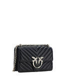 The Mini Love leather Shoulder Bag by Pinko is a perfect mix of elegance and functionality. The front closure with magnetic flap ensures safety and practicality, while the iconic gold-plated Love Birds logo embossed on the front adds a touch of distinctive luxury. The quilted and padded design is not only refined, but also gives a feeling of softness and comfort. The double internal compartment offers enough space to keep everything in order, while the sliding chain shoulder strap allows you to adjust it to your preferred height, making it perfect for any occasion. The internal slip pocket and the tone-on-tone embroidered brand monogram on the back add exclusive details that make this bag a must-have.