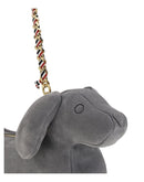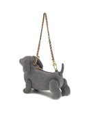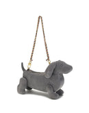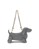 Hector suede Shoulder Bag by Thom Browne is an elegant and original accessory inspired by the iconic Hector dachshund silhouette. Featuring a removable chain strap with tricolor ribbon, it combines playful design with the brand’s signature sophistication. The single compartment interior provides essential space for personal items, making this bag a perfect balance of style and functionality.
