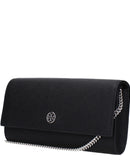 The product with MPN 157098001 and code F83369 leather in black is a clutches designed by Tory Burch. It has features like front logo, removable shoulder.