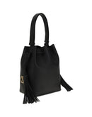 The VLogo Signature Bucket Bag by Valentino Garavani is an elegant accessory with a bold personality, crafted from premium hammered leather. The design is enhanced by the iconic VLogo Signature metal detail on the side, adding a touch of sophistication. Featuring an adjustable, tone-on-tone leather handle, it features a drawstring closure and decorative tassels on the sides. The interior is fully lined, demonstrating the maison’s signature attention to detail.