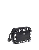 Valentino Garavani’s Nellcôte Shoulder Bag is crafted from garnet calfskin and embellished with a profile decorated with ball studs and rivets for a gritty yet refined look. Equipped with an adjustable leather shoulder strap, it can be worn comfortably on the shoulder or cross-body. The zipper closure and metal parts with palladium finish complete the design, along with the small metallic detail with Signature VLogo that signs the accessory with discreet elegance.