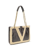 The Viva Superstar medium Tote Bag by Valentino Garavani is a bold, wrap-around accessory perfect for the cold season. Made of soft sheepskin, it is distinguished by the contrasting Signature maxi VLogo, an iconic element that lends character to the design. The sliding chain allows it to be worn either on the shoulder or crossbody, while metallic parts in an antiqued gold finish and a zipper closure complete the model with a touch of functional elegance.