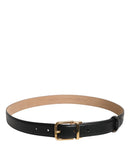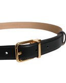 Dolce & Gabbana Black Leather Logo Metal Waist Buckle Belt