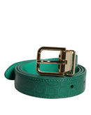 Dolce & Gabbana Green Leather Logo Metal Waist Buckle Belt