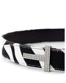 Tom Ford White/Black Velvet Belt. In leather, closure with crystal-covered logo buckle.