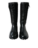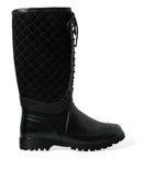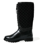 Dolce & Gabbana Black Chioggia Rubber Suede Rain Boots Shoes
