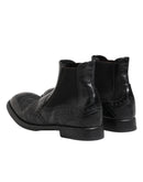 Dolce & Gabbana Black Leather Ankle Boots Slip On Shoes