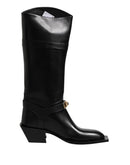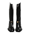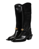 Dolce & Gabbana Black Leather High Boots Flats Shoes