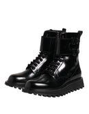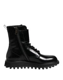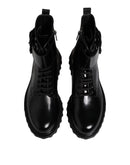 Dolce & Gabbana Black Leather Lace Up Mid Calf Boots Shoes