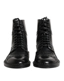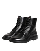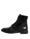 Dolce & Gabbana Black Leather Lace Up Mid Calf Boots Shoes