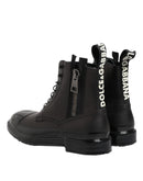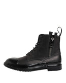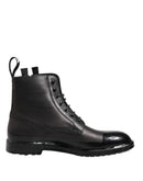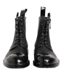 Dolce & Gabbana Brown Black Lace Up Mid Calf Men Boots Shoes