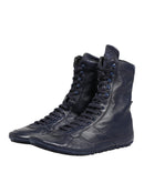Dolce & Gabbana Dark Blue Deer Leather Mid Calf Boots Shoes