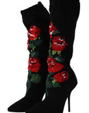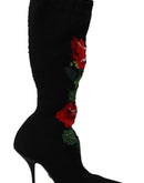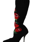 Dolce & Gabbana Black Stretch Socks Red Roses Booties Shoes