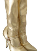 Dolce & Gabbana Gold Rhinestones Ankle Boots Socks Shoes