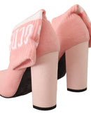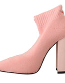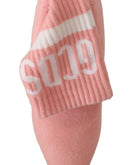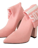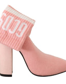 GCDS Pink Suede Logo Socks Block Heel Ankle Boots Shoes