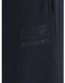 The Wide-Leg Track Pants from the Salomon x MM6 collaboration blend athletic functionality with avant-garde design. Crafted from a technical fabric with a perforated yet non-transparent texture, they offer breathability and lightness while maintaining a refined structure. The elastic waistband ensures comfort and ease of movement, while the collaboration logo printed on the left leg adds a bold, graphic finish. A statement piece that embodies the perfect fusion of performance and experimental style.