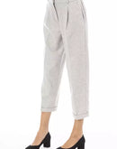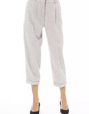Elevate your wardrobe with Alpha Studio’s impeccably tailored trousers, designed to make a statement with their sleek aesthetic and meticulous craftsmanship. These chic trousers boast an elegant gray hue, versatile enough for both office sophistication and evening allure. Front pockets add a touch of functionality while the rear welt pockets underscore the garment’s sartorial elegance. Crafted in Italy, these pants are a blend of quality materials including wool, polyester, polyamide, and fiber, promising a perfect fusion of comfort and style.