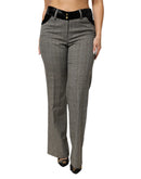 BENCIVENGA Gray Wool Blend Plaid Straight Leg Velvet Waist Pants