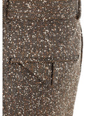 Knitted Herrington Bottega Veneta pants in brown, herringbone work, covered hook and zipper front closure, two side welt pockets and back pocket with triangular flap. Stretch fabric with allover ‘Painting’ effect. SKU Item: 664620 V0WM0. Composition: 60% Viscose, 34% Polyamide, 4% Elastane, 2% Silk-Sku inside:23OT29