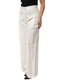 women’s trousers, expertly crafted in Italy. These elegant white wide-leg palazzo pants feature a high-waist silhouette with front pleats, offering a chic and timeless fit.