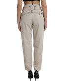 Dolce & Gabbana Beige Cotton High Waist Tapered Pants