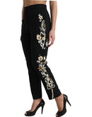 Dolce & Gabbana Black Floral Applique High Waist Tapered Pants