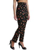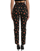 Dolce & Gabbana Black Floral Wool High Waist Tapered Pants
