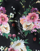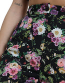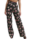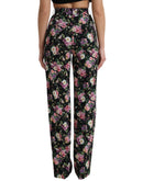 Dolce & Gabbana Black Floral Wool High Waist Wide Leg Pants