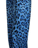 Dolce & Gabbana Blue Leopard Print High Waist Pants