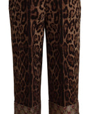 Dolce & Gabbana Brown Leopard Gold Jacquard High Waist Pants