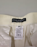 Dolce & Gabbana Ivory High Waist Cropped Folded Hem Trousers Pants
