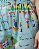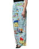 Dolce & Gabbana Light Blue Drawing Mid Waist Wide Leg Pants