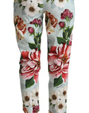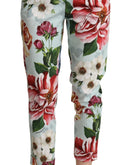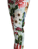 Dolce & Gabbana Light Blue Fiori Print Cotton Trouser Tapered Pants