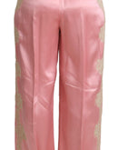 Dolce & Gabbana Pink Lace Trimmed Silk Satin Wide Legs Pants