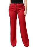Dolce & Gabbana Red Viscose Straight Fit Pants