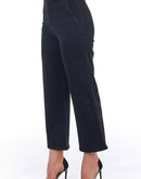 Unleash your bold fashion sense with Frankie Morello’s striking cropped trousers, a masterpiece of Italian craftsmanship. These high-waisted beauties are not just a trendy garment but a fusion of comfort and chic, tailored to accentuate your silhouette. Multiple pockets add a practical edge to these trousers, while the sleek front closure with a zip and button ensures a seamless fit. Frankie Morello takes your wardrobe to new heights of style.
