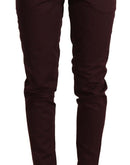 Just Cavalli Maroon Mid Waist Skinny Women Trouser Pants