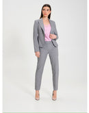 The Rinascimento women’s cigarette trousers, model CFC0117749003, are the perfect choice for an elegant and refined look. Crafted from high-quality fabric (64% polyester, 34% viscose, 2% elastane), these trousers provide a comfortable and slightly stretchy fit, enhancing the feminine silhouette. The straight, slim cut, combined with pleats and a front button and zip closure, adds a touch of class to any outfit. The fine vertical pinstripe pattern elongates the figure and gives a distinctive style detail, making these trousers suitable for both office wear and more formal occasions. Perfect to pair with shirts or blouses, they ensure a polished and fashionable appearance.