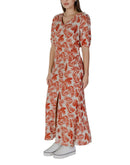 The B.YOUNG BYJOSA SLIT 20813211 long dress for women is the ideal choice for those seeking an elegant and modern look. Made from 100% viscose, this dress is lightweight and soft on the skin, perfect for spring and summer seasons. The design features a fluid and feminine silhouette, with a delicate V-neckline and short puff sleeves that add a refined touch. The side slit detail brings movement and a contemporary feel, while the vibrant floral print makes this piece truly stand out. Suitable for both casual and more sophisticated occasions, this dress pairs effortlessly with sneakers or sandals, ensuring a flawless style every time.