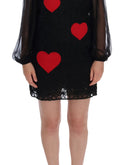 Dolce & Gabbana Black Lace Red Heart Shift Dress