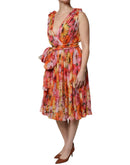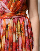 Dolce & Gabbana Multicolor Floral Silk V-neck Chiffon Dress